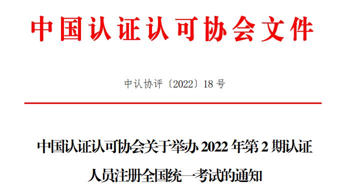 中国认证认可协会关于举办2022年第2期认证人员注册统一考试的通知